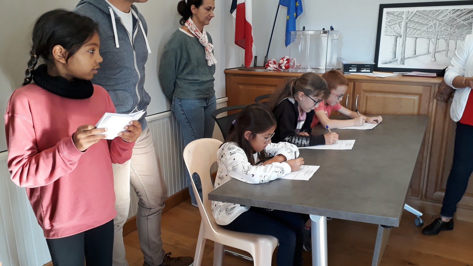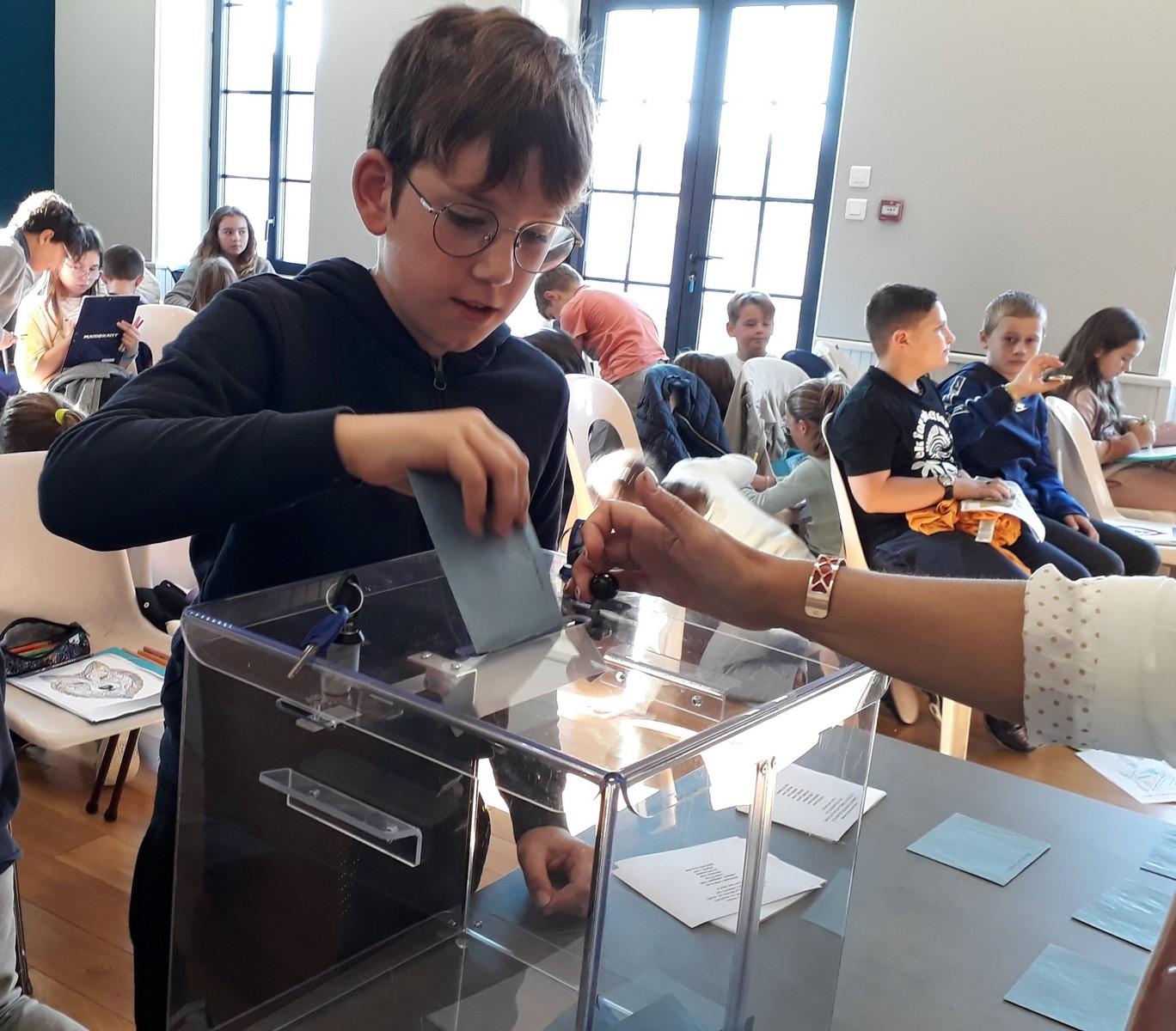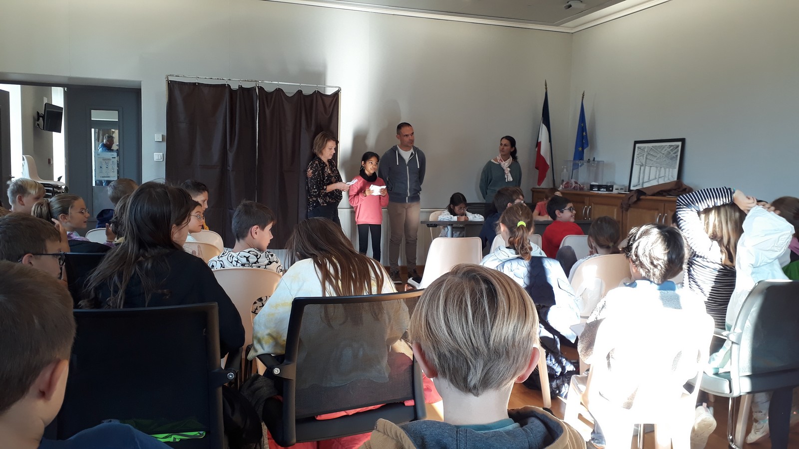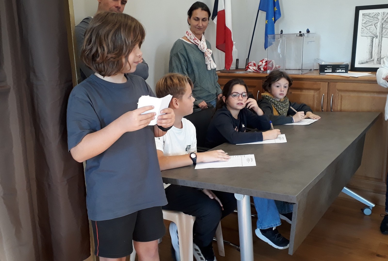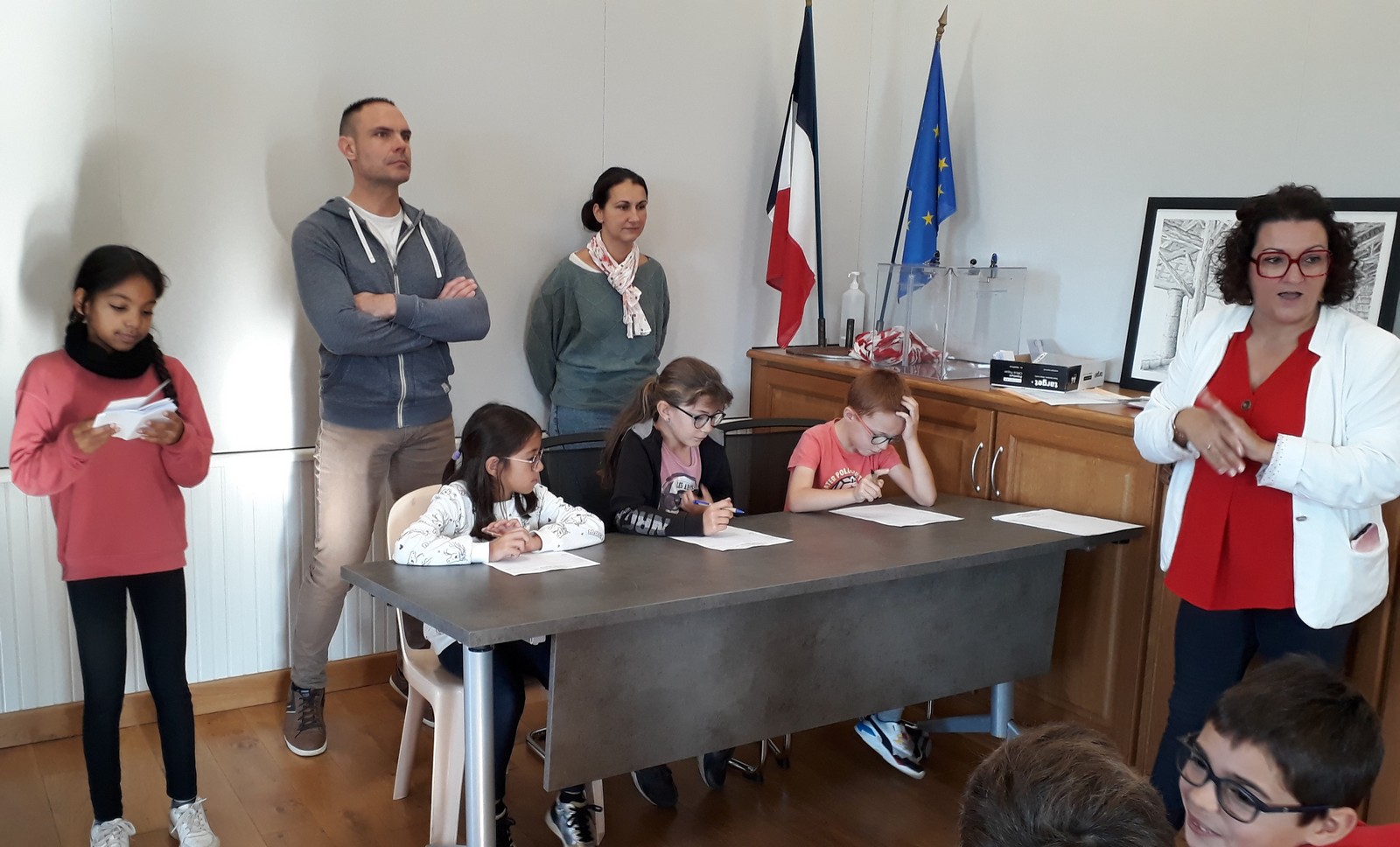 Le nouveau conseil municipal des jeunes a été élu le vendredi 11 octobre à la mairie. 7 candidats de CM1 et 8 de CM2 se présentaient. Depuis quelques semaines, ils avaient mené campagne à l’école à l’aide d’affiches, l’occasion de s’initier au parcours civique d’une élection.