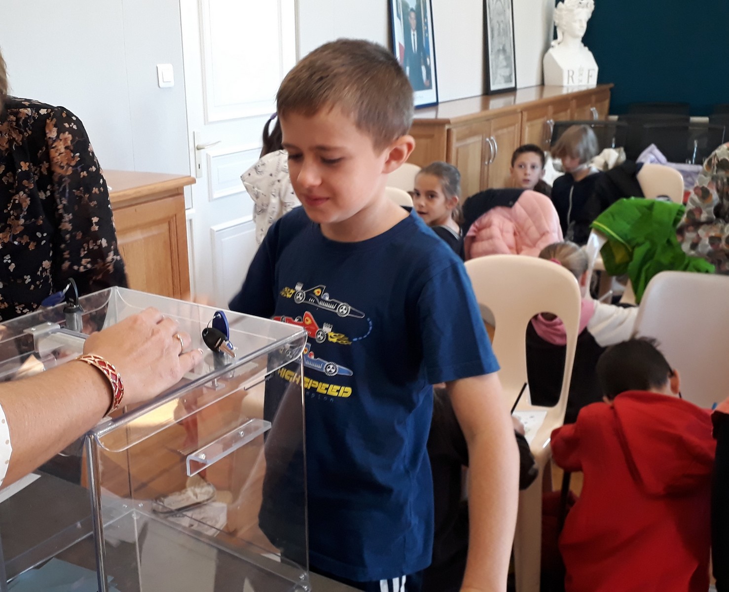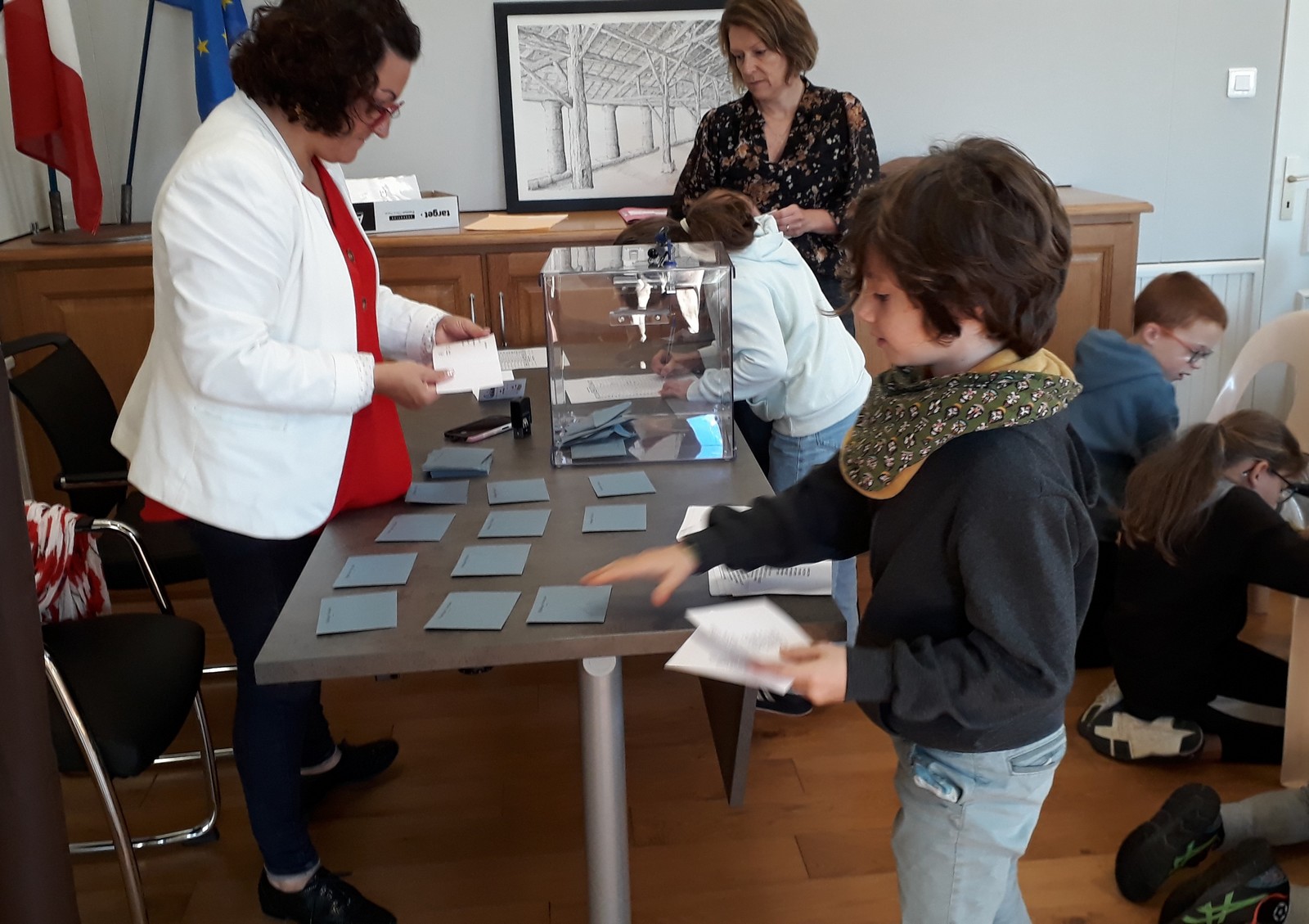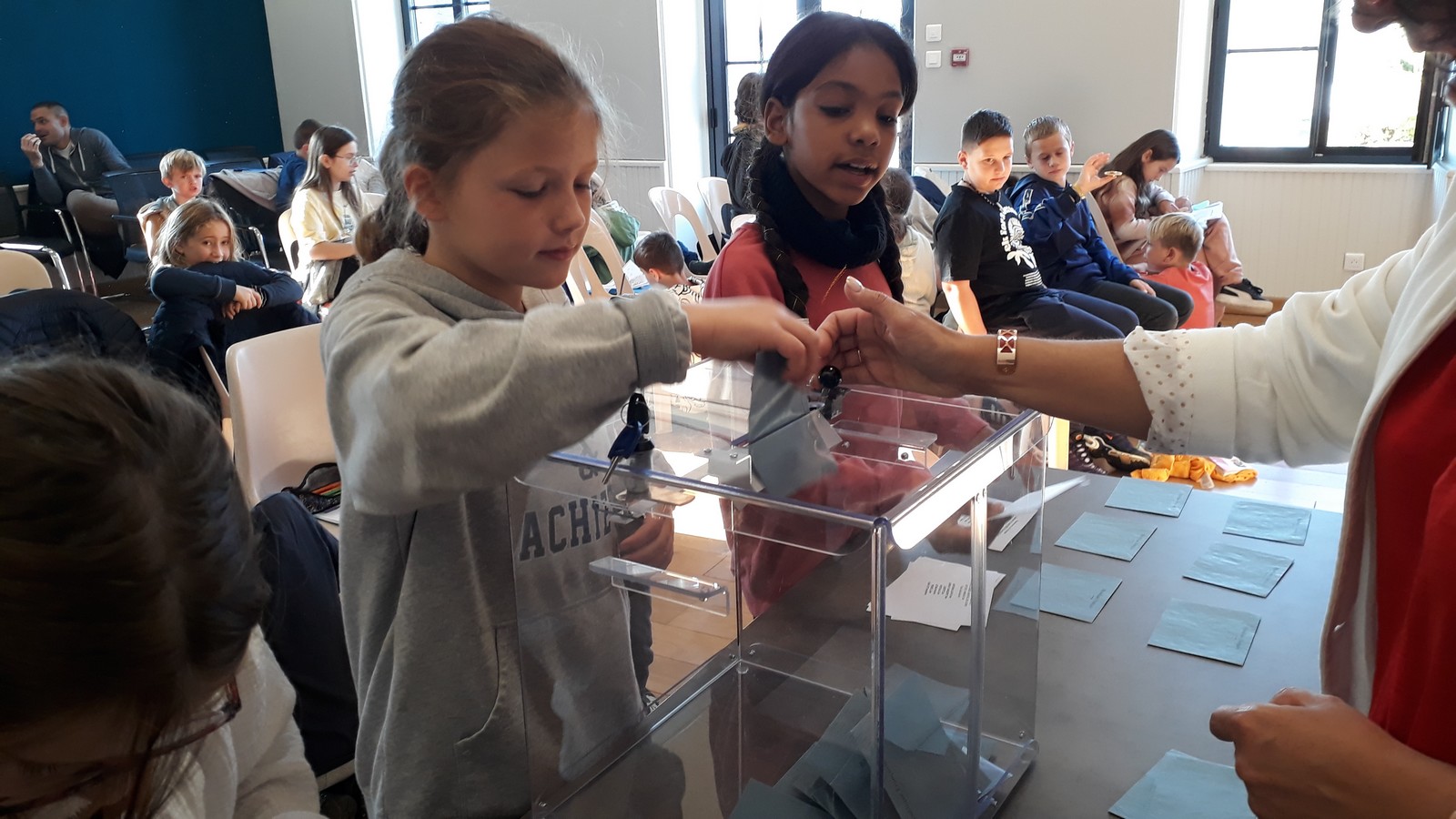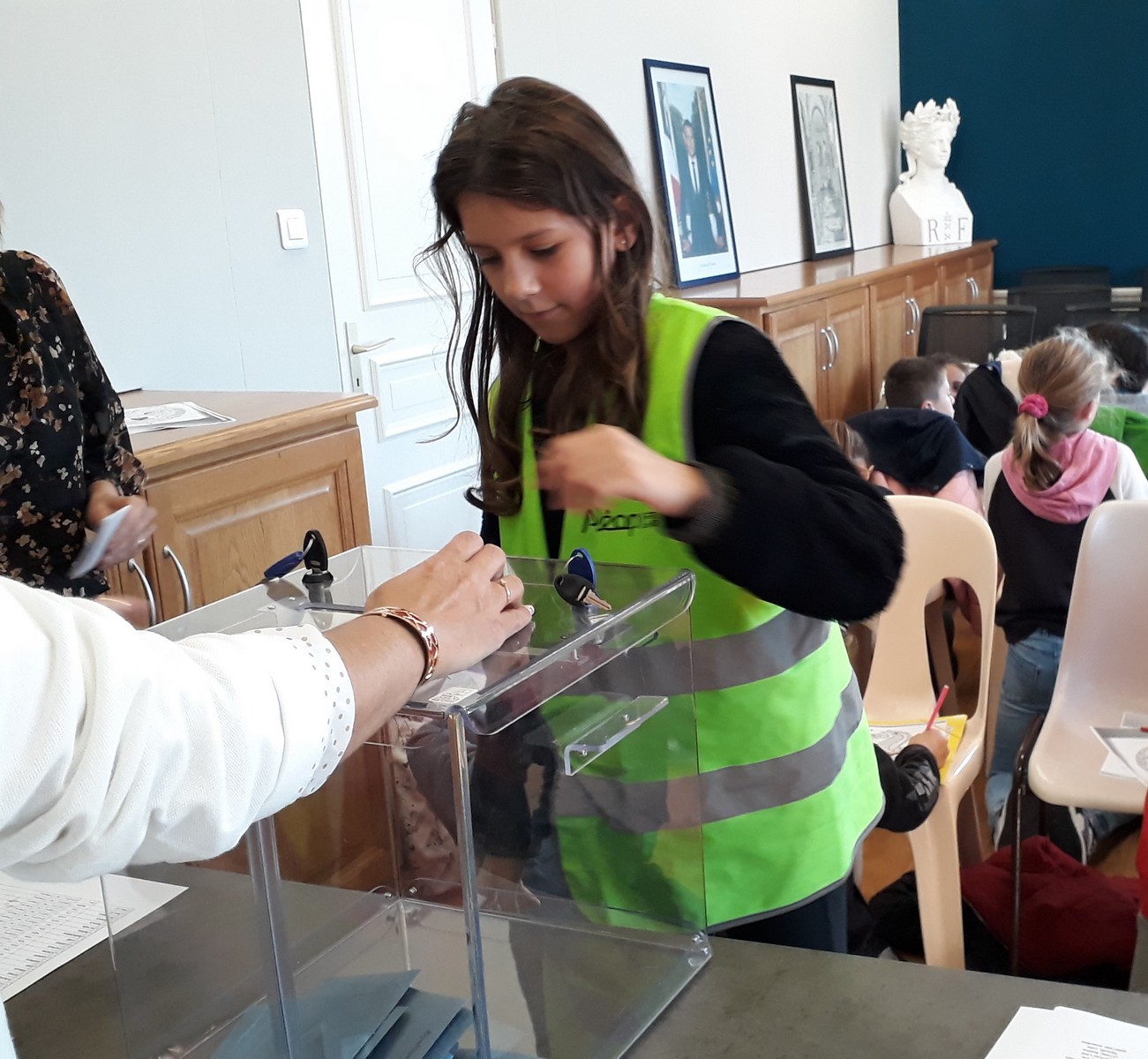 Le nouveau conseil municipal des jeunes a été élu le vendredi 11 octobre à la mairie. 7 candidats de CM1 et 8 de CM2 se présentaient. Depuis quelques semaines, ils avaient mené campagne à l’école à l’aide d’affiches, l’occasion de s’initier au parcours civique d’une élection.