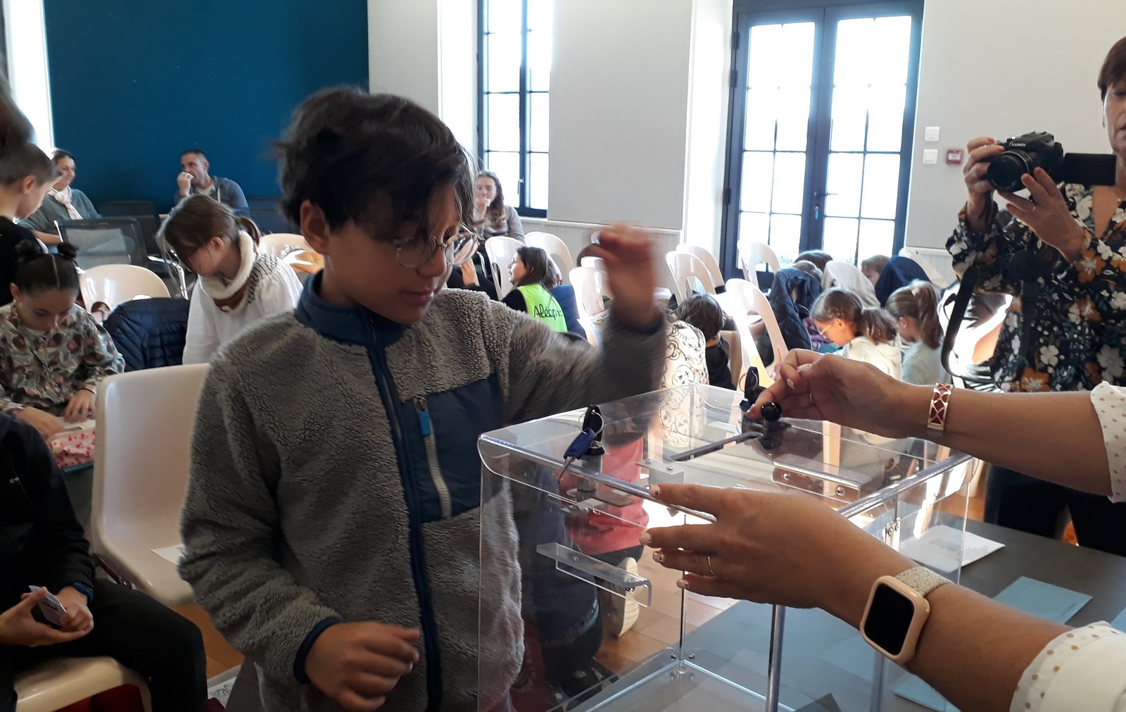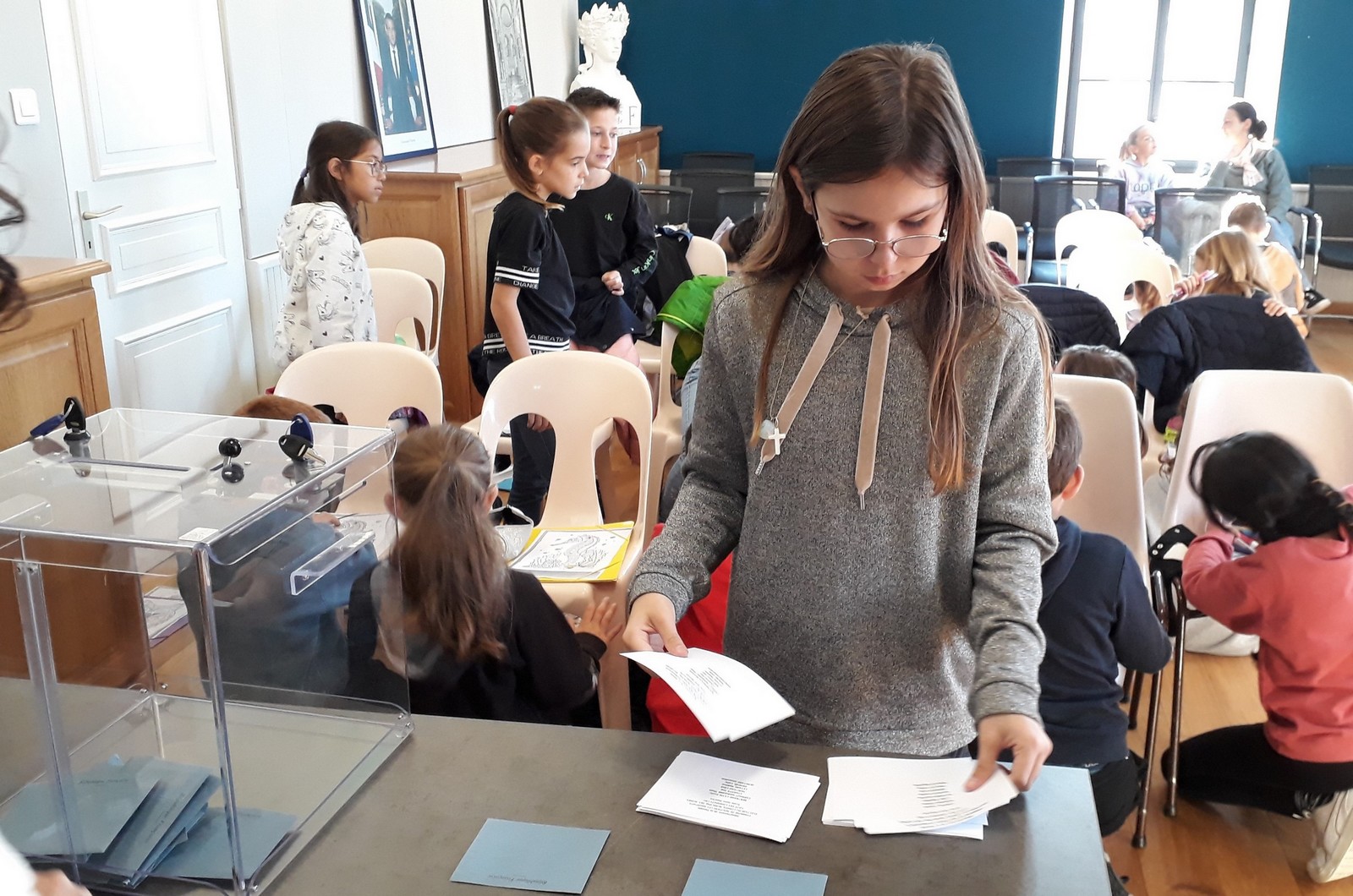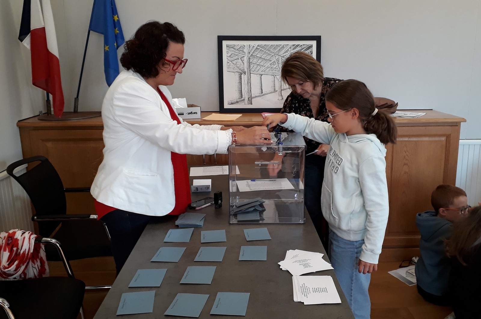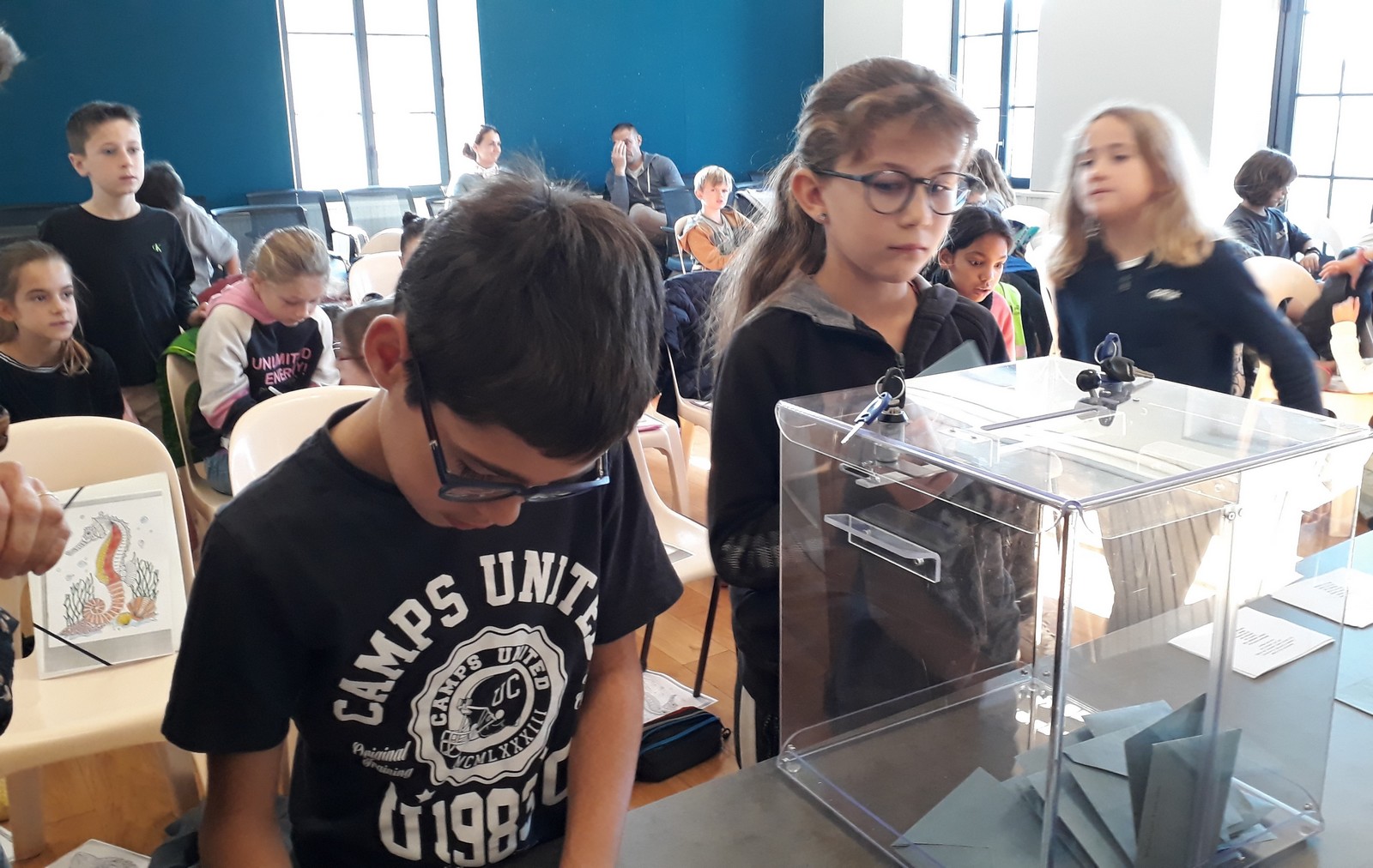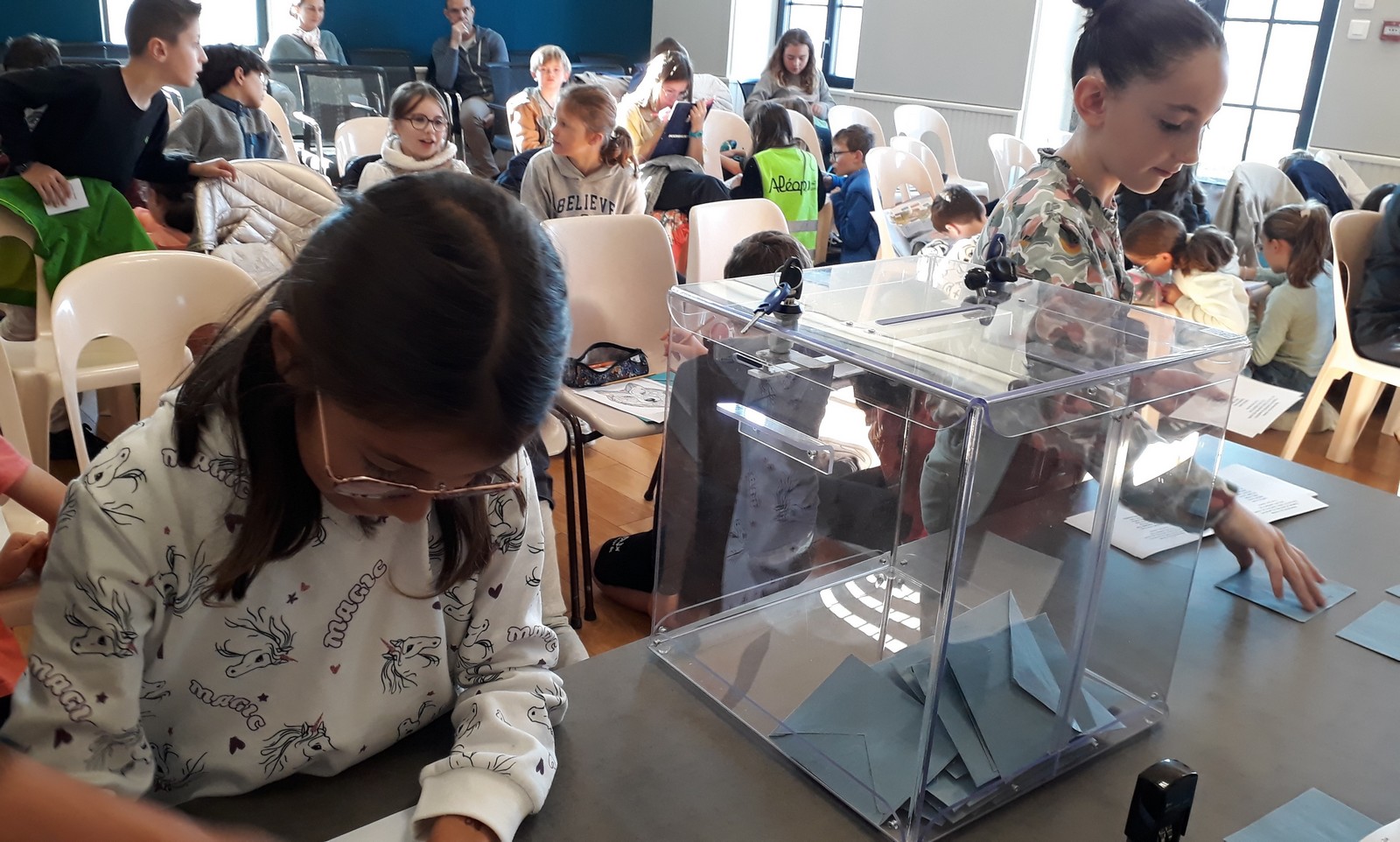 Le nouveau conseil municipal des jeunes a été élu le vendredi 11 octobre à la mairie. 7 candidats de CM1 et 8 de CM2 se présentaient. Depuis quelques semaines, ils avaient mené campagne à l’école à l’aide d’affiches, l’occasion de s’initier au parcours civique d’une élection.