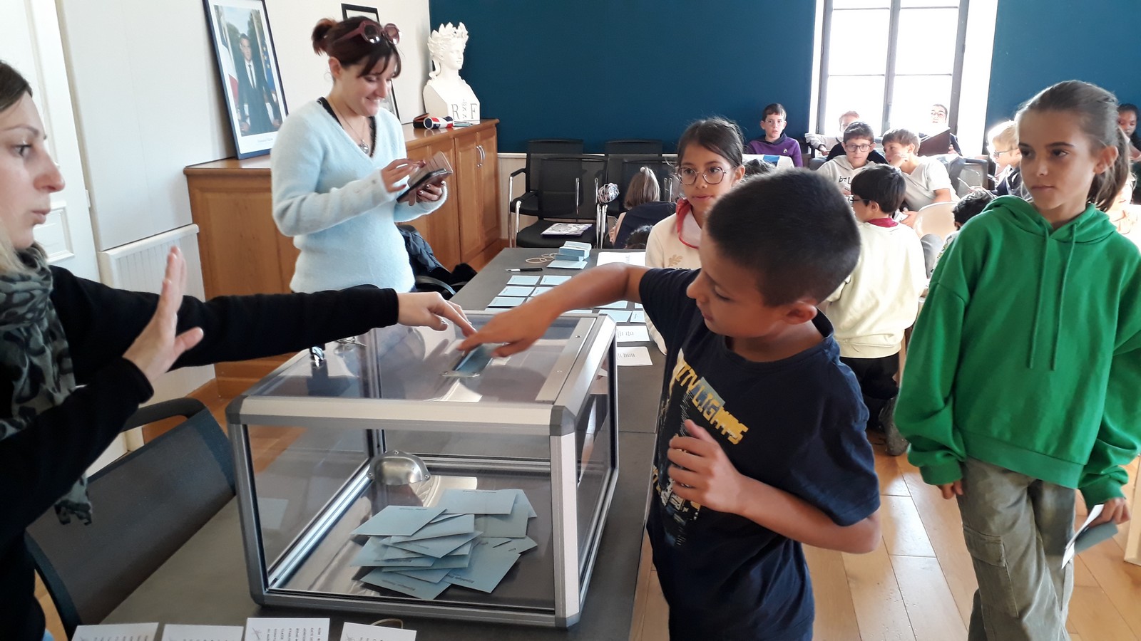 Les CM1 et CM2 ont voté le vendredi 10 octobre pour choisir le nouveau CMJ 2025-2026. Les candidats avaient effectué leur campagne électorale à l’école par la réalisation d’une affiche et en présentant leurs idées. Les élus sont :